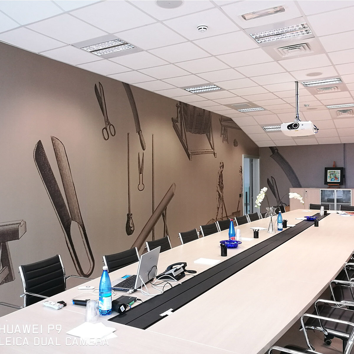 L’associazione conciatori di Santa Croce sull’Arno per la nuova sede ha scelto uno stile classico per l’insegna esterna con lettere scatolate color bronzato, mentre all’interno per la sala riunioni con la pellicola murale stampata, abbiamo completamente rinnovato e una parete bianca ha completamente cambiato aspetto.